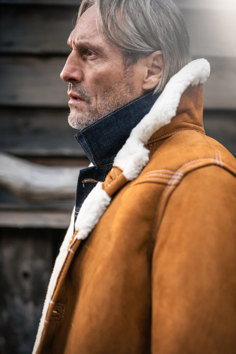 Introducing The ASPEN Shearling Jacket – From the backs of brave military officers to the hunters and ranchers of rugged mountain passes, the sheepskin coat has always been a warm and dependable companion. The timeless elegance of shearling has also been favoured by music and film icons, and we are proud to introduce our take on this legendary design.