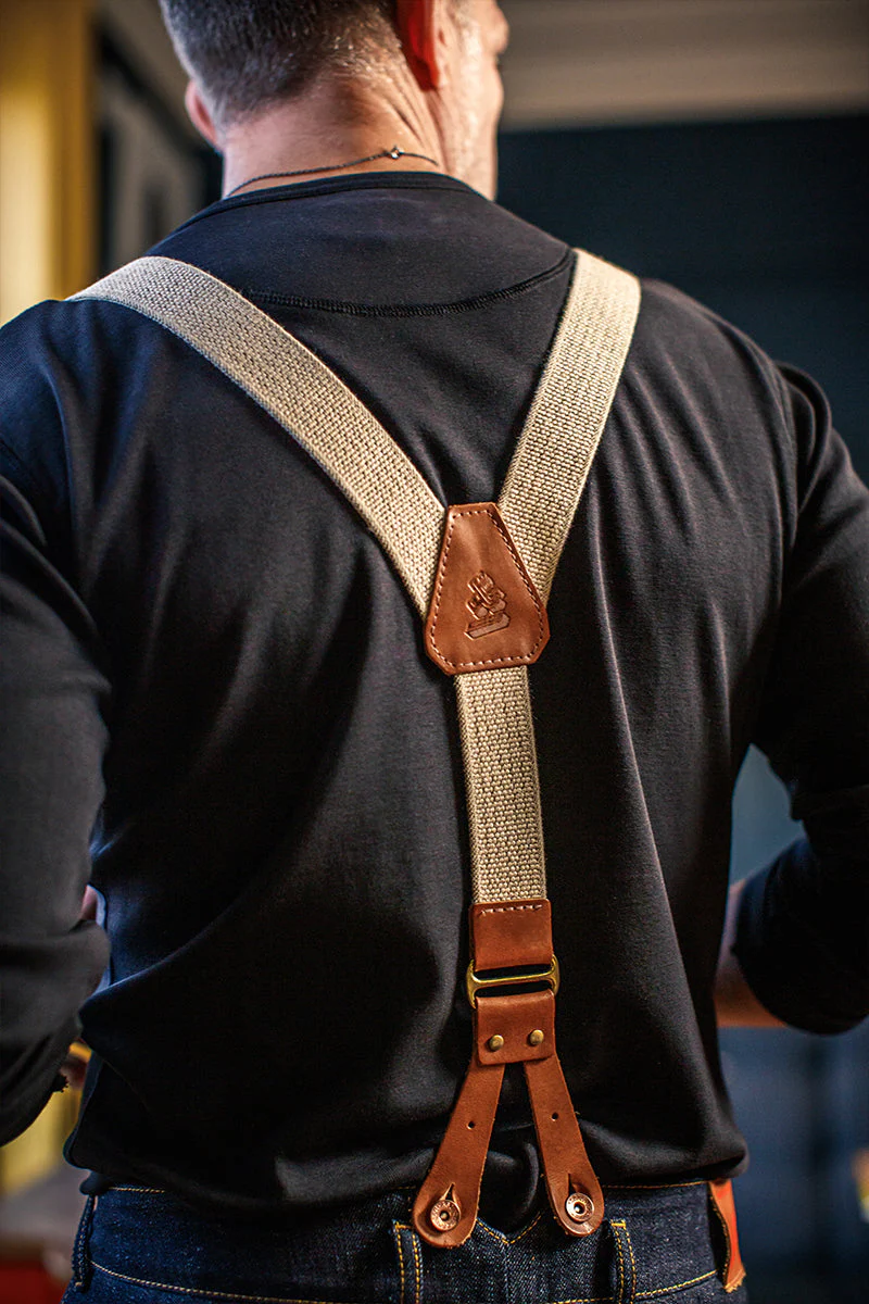 Designed and crafted in the UK, the &SONS leather braces make a stylish addition to our New Frontier Denims.