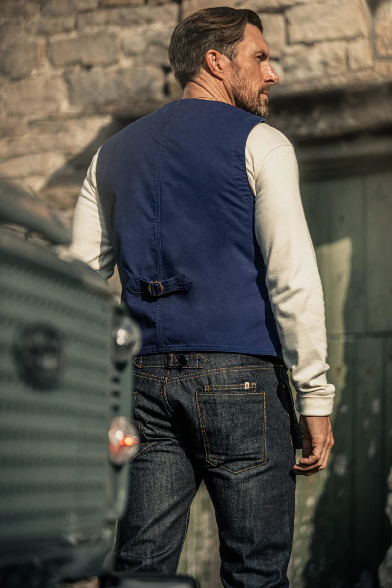 The Watson Waistcoat is a nod to classic British tailoring, built from 100% brushed cotton in a deep midnight blue - the same rich fabric used in the Hemingway Suit. It carries structure without stiffness, comfort without compromise.